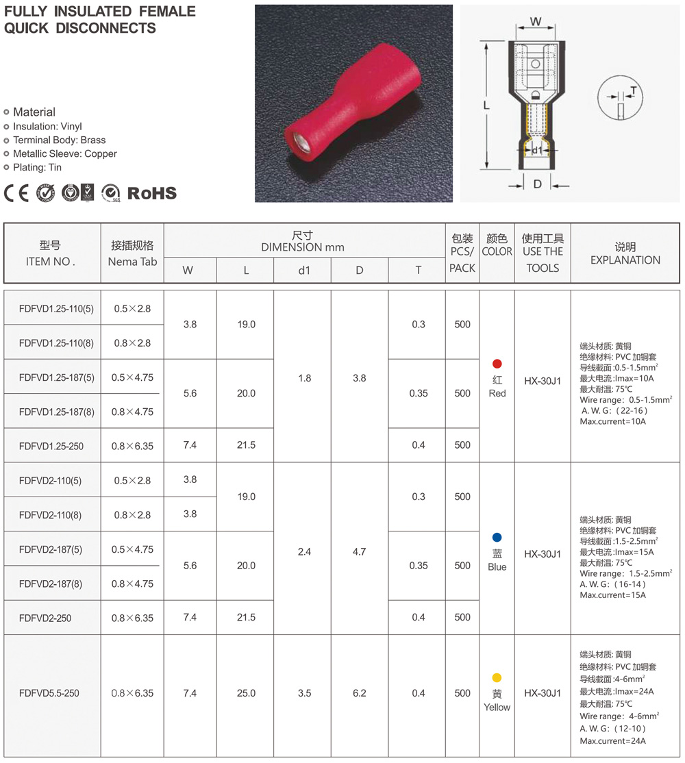 圆形预绝缘端头(RV型)