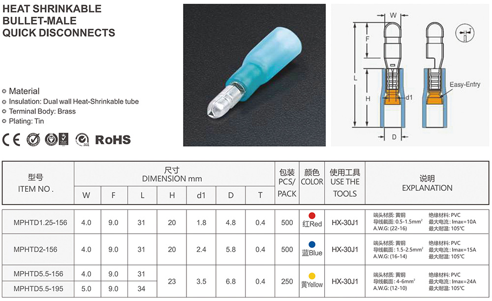 热缩子弹形公预绝缘端头
