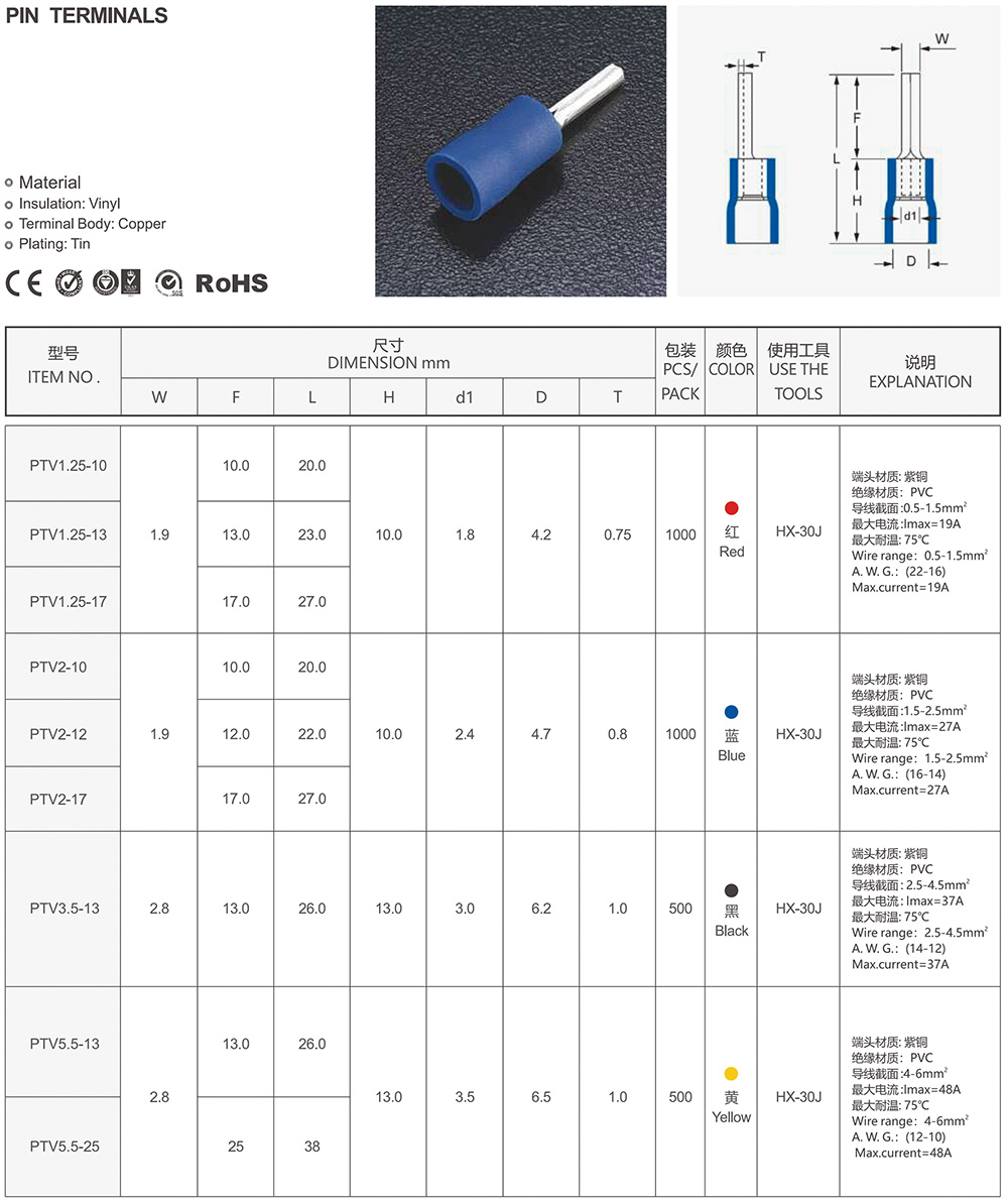 针形预绝缘端头(PTV型)